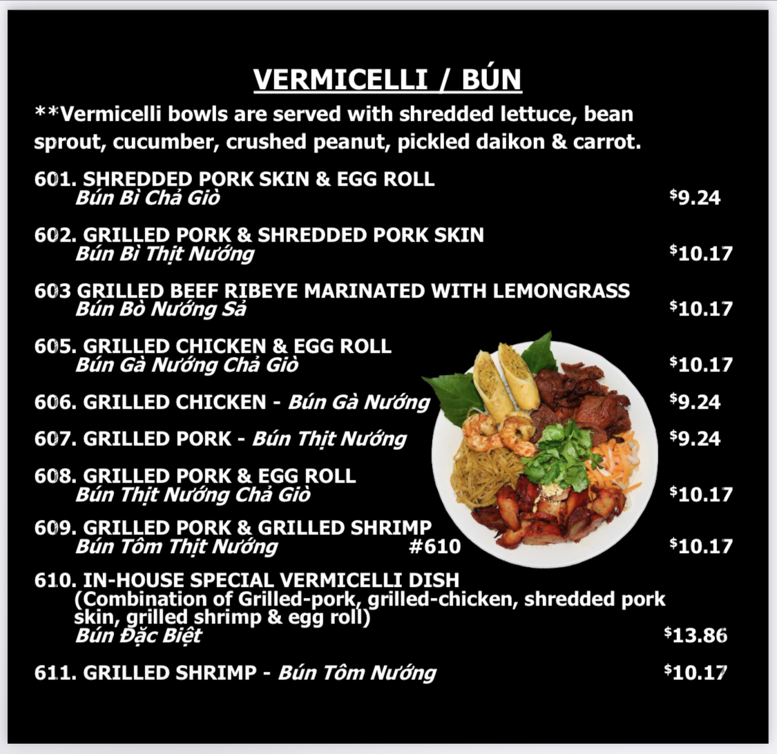 Welcome to Phở Thiên Ý, a hidden gem located at 5310 E Belknap St, Haltom City, Texas. This cozy establishment excels in delivering authentic Vietnamese flavors at affordable prices. The menu showcases a variety of dishes, from delightful appetizers like the Grilled Chicken Sandwich and the Grilled Beef Sandwich to a selection of vibrant vermicelli bowls featuring Shredded Pork Skin and scrumptious egg rolls.